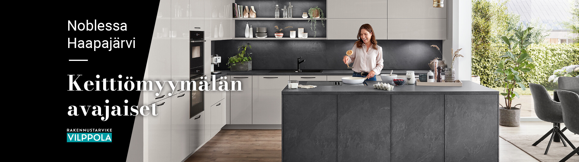 Uusi 300 m2 Noblessa-keittiömyymälä sijaitsee Rakennustarvike Vilppolan yläkerrassa osoitteessa Kauppakatu 5. Vilppolalta saat kaiken kotisi kattavaan remontointiin sisustussuunnittelusta remonttitarvikkeisiin. Tervetuloa tutustumaan uuteen keittiömyymälään ja hyödyntämään avajaistarjoukset.