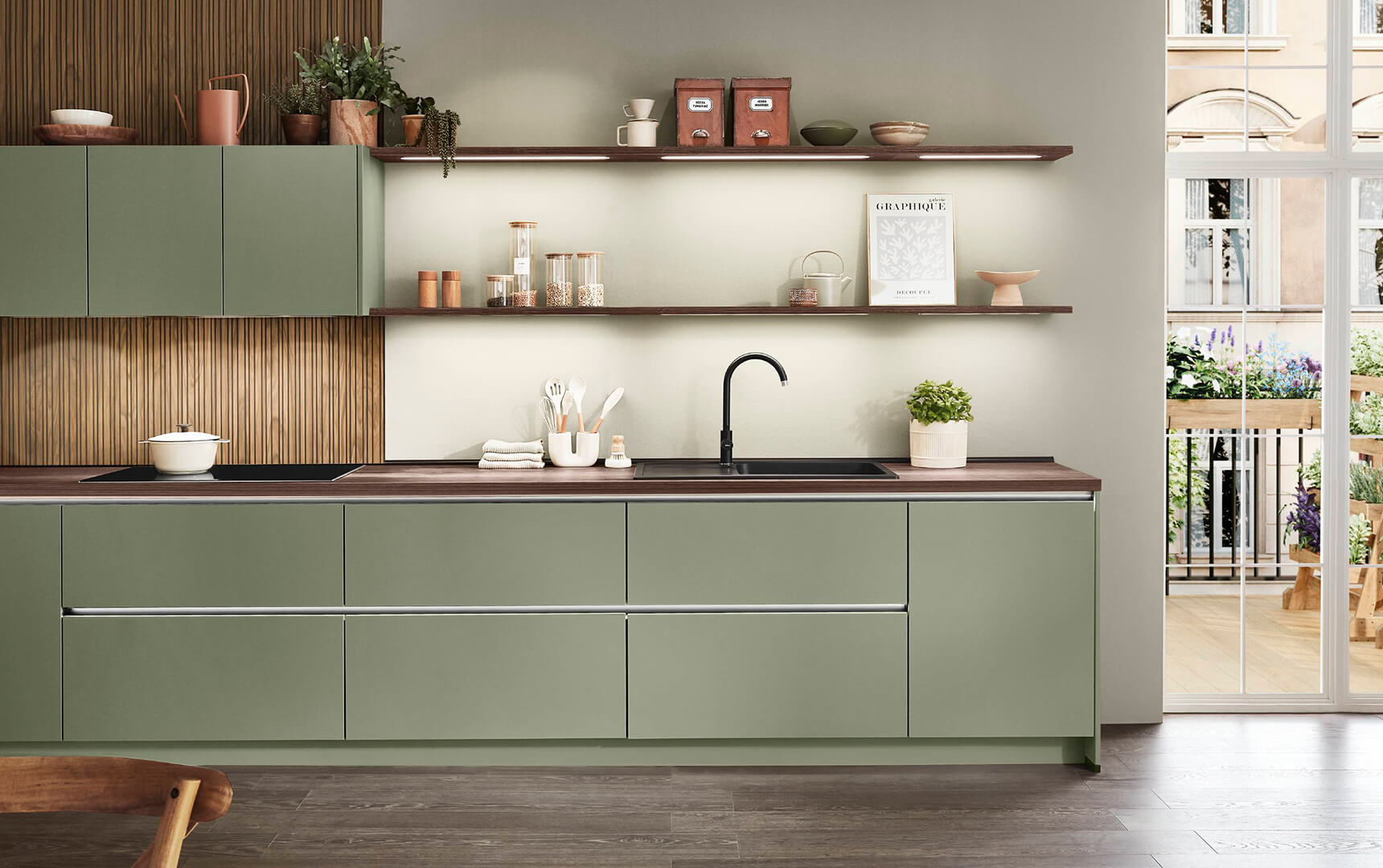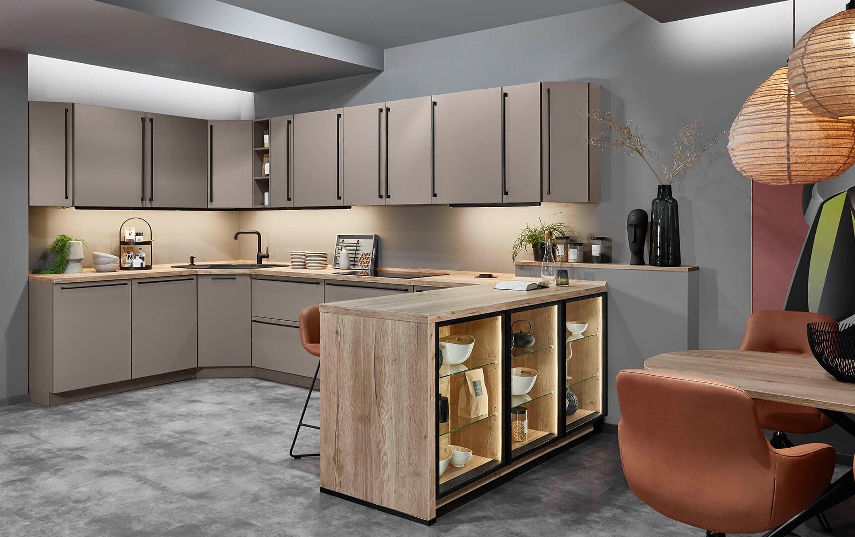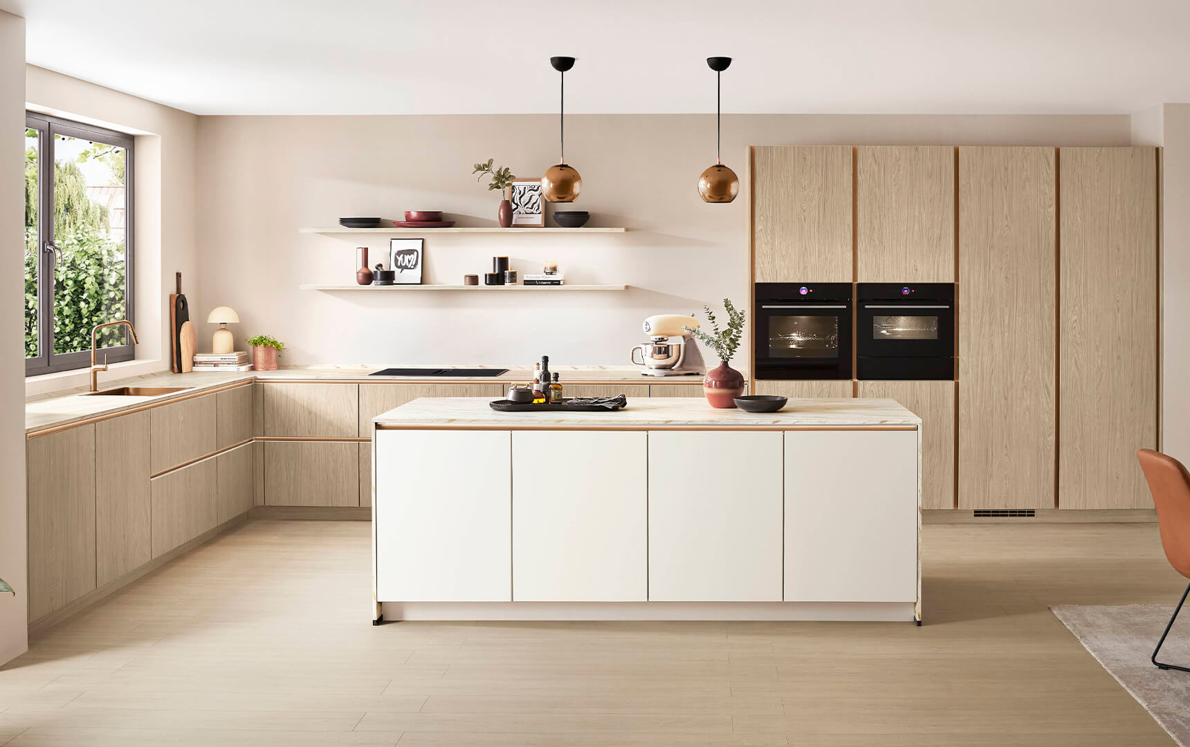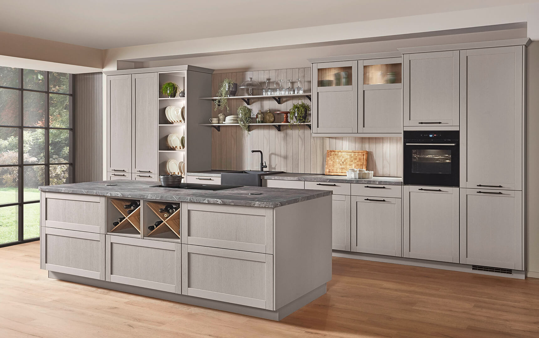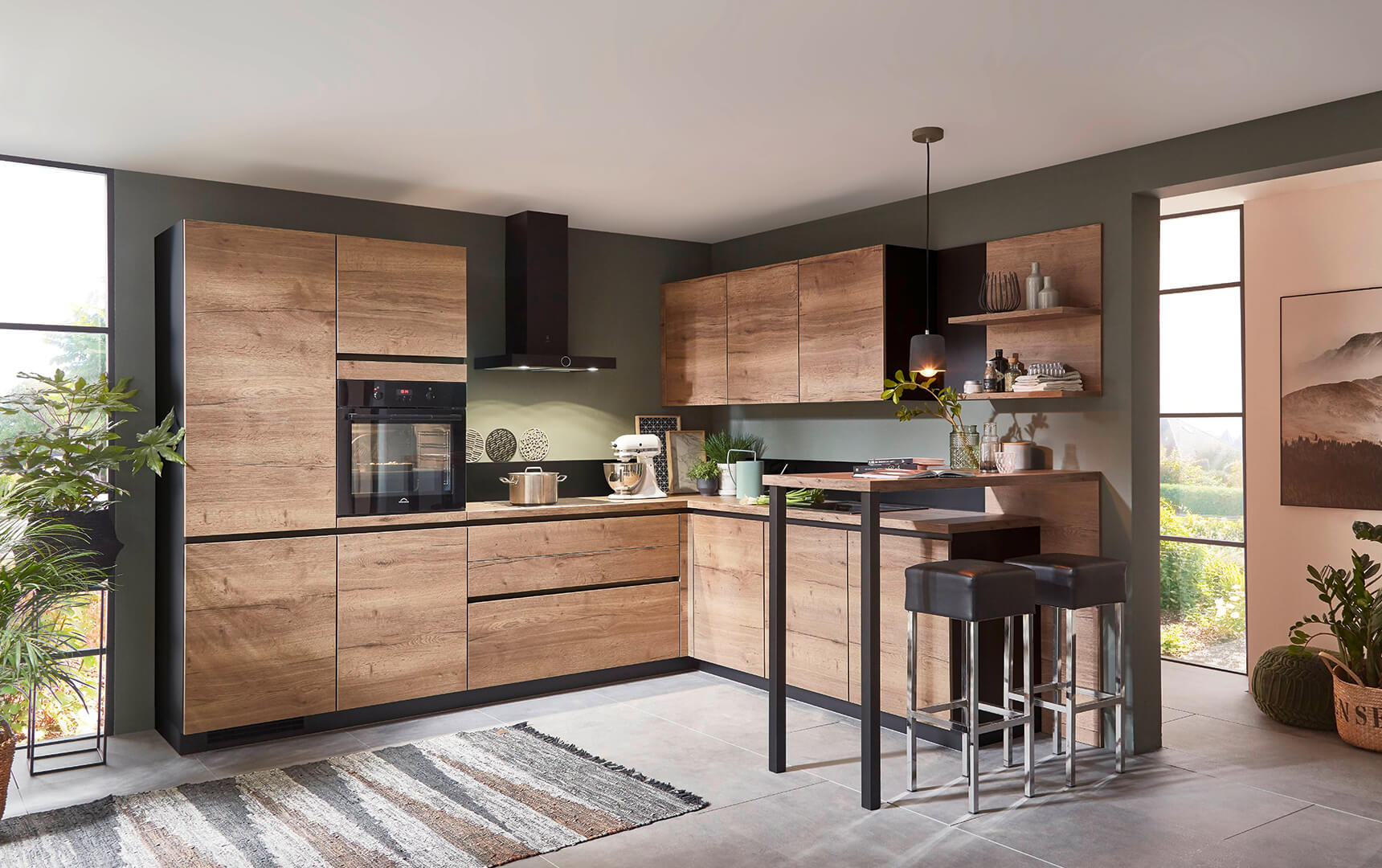 Kodikkaassa keittiössä käytetään myös luonnonläheisiä sävyjä ja materiaaleja, kuten pehmeitä ruskean sävyjä ja puukuoseja. Viherkasvit tuovat keittiöön viihtyisyyttä, ja niitä voi avohyllyjen lisäksi sijoittaa Noblessan erityisiin kasvihyllyihin, joissa on integroituna kasvua edistävät kasvivalot.