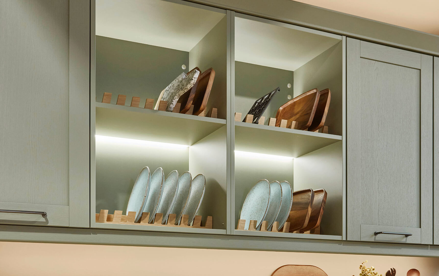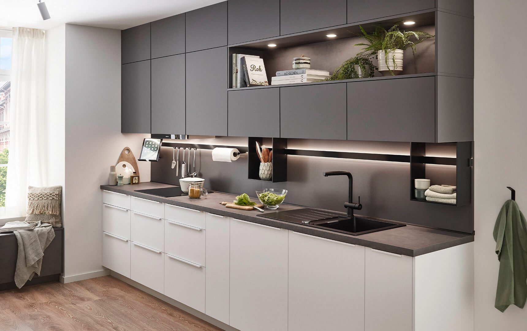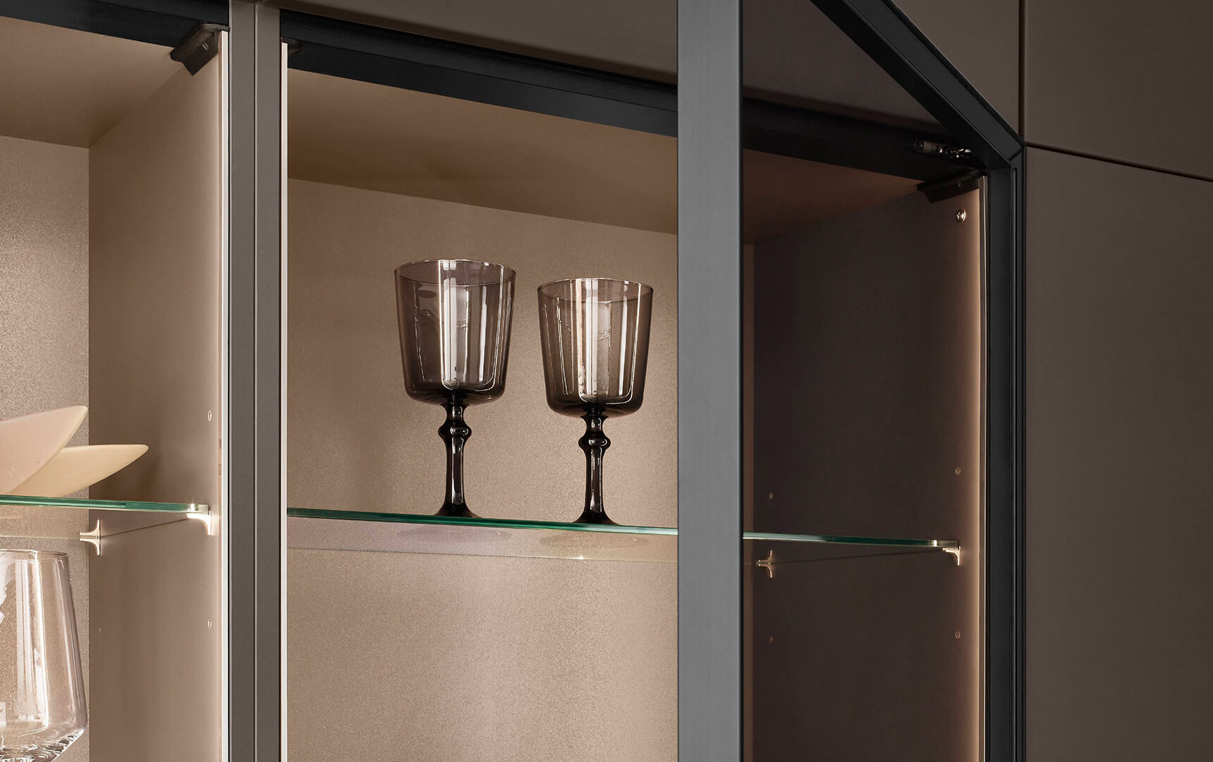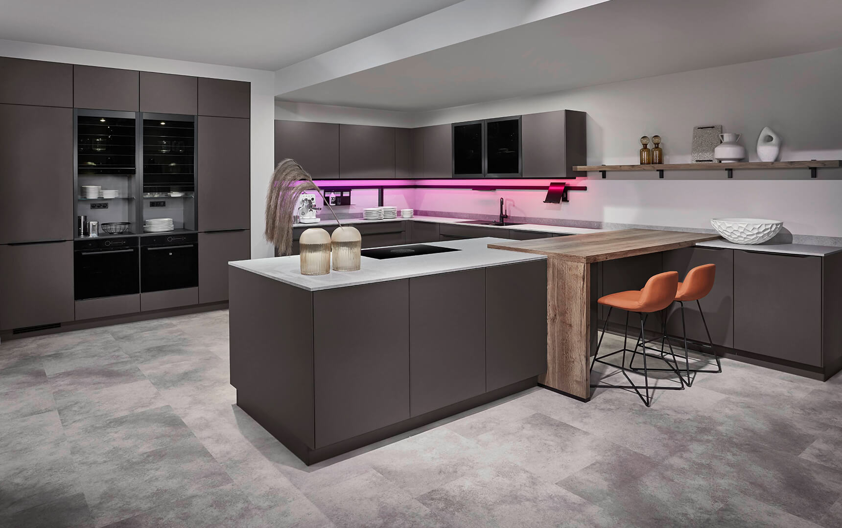 – Noblessan asiakkaat haluavat yleensä keittiöönsä jonkun jujun eli näyttävän yksityiskohdan. Sellaisen voi luoda valaistuksella. Esimerkiksi Line N -keittiön uravalo, lasiovikaappien sisävalot, erilaiset valohyllyt, sokkelivalot sekä kaapin päälle asennettu epäsuora valo tekevät keittiöstä upean. Uutuusmallistomme lasiovikaapit erinäisin taustapaneelein ja valoin ovat nyt IN!