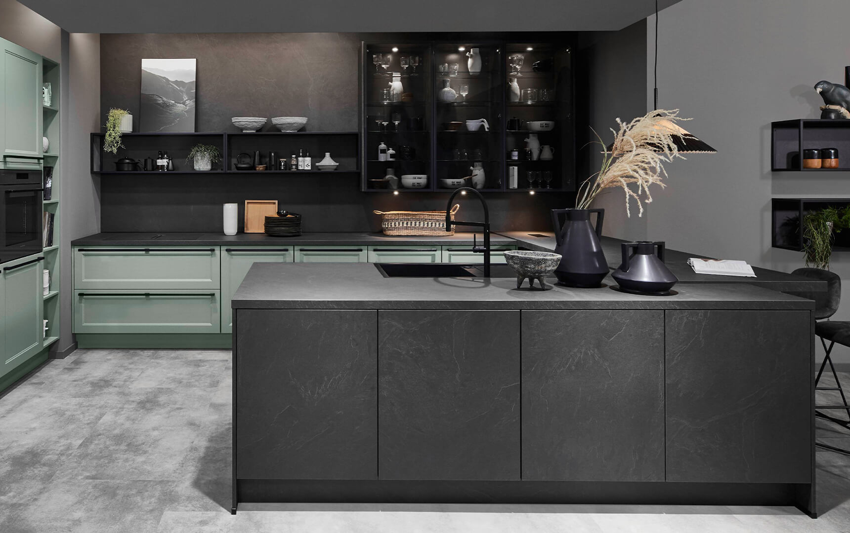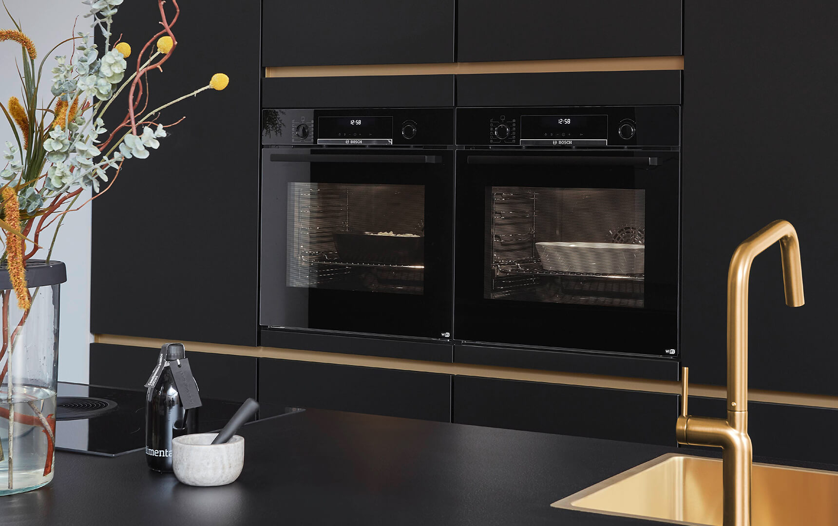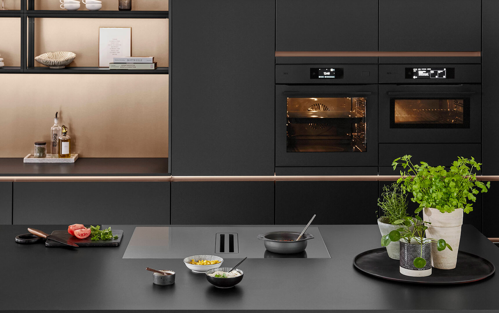 Sävy sävyyn -sisustetut keittiöt näyttävät viimeistellyiltä, ja esimerkiksi mustiin kaapistoihin yhdistetyt mustat kodinkoneet tekevät keittiöstä ultramodernin. Mattamustat kodinkoneet sulautuvat kauniisti yhteen mattapintaisten keittiön kaapistojen kanssa.