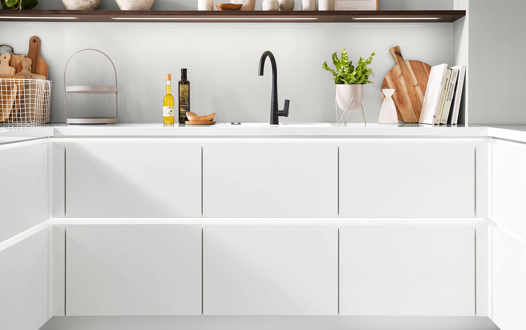 Keittiön ajaton tyyli tekee siitä katseenkestävän vuosia eteenpäin. Valitse keittiön kaapistoon hillittyjä sävyjä, joihin et kyllästy nopeasti, ja pidä keittiön yleisilme pelkistettynä. Kaappien sisään piilotetut kodinkoneet ja säilytysratkaisut jättävät tilaa keittiön työtasoille, jolloin kokonaisuus säilyy sopivan minimalistisena.