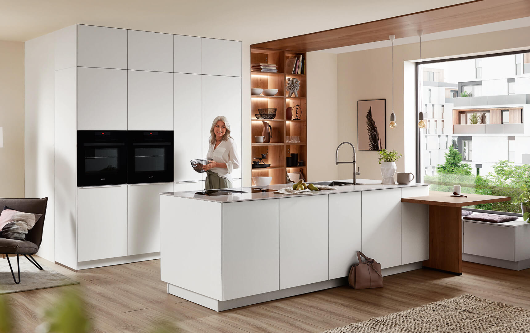 Noblessa Oulun keittiösuunnittelija Kaisa Kaitera kertoo Noblessan vetimettömien Line N -keittiöiden nousseen nopeasti asiakkaiden suosikeiksi. Niissä yhdistyvät helppohoitoiset, kahvattomat ovipinnat, linjakas ulkoasu ja kauniit värivaihtoehdot. Oulun suunnalla asiakkaat toivovat moderniin keittiöönsä etenkin vaaleutta ja ilmavuutta: