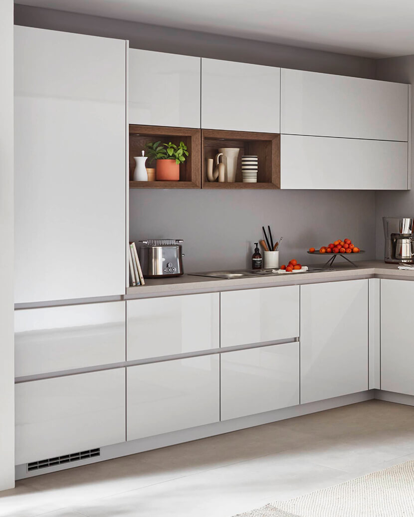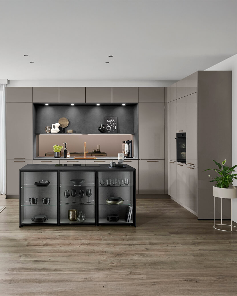 Taupe-harmaa korkeakiiltoLisää harmaita ovimalleja ja paljon muita värivaihtoehtoja löydät Noblessan keittiökuvastosta.