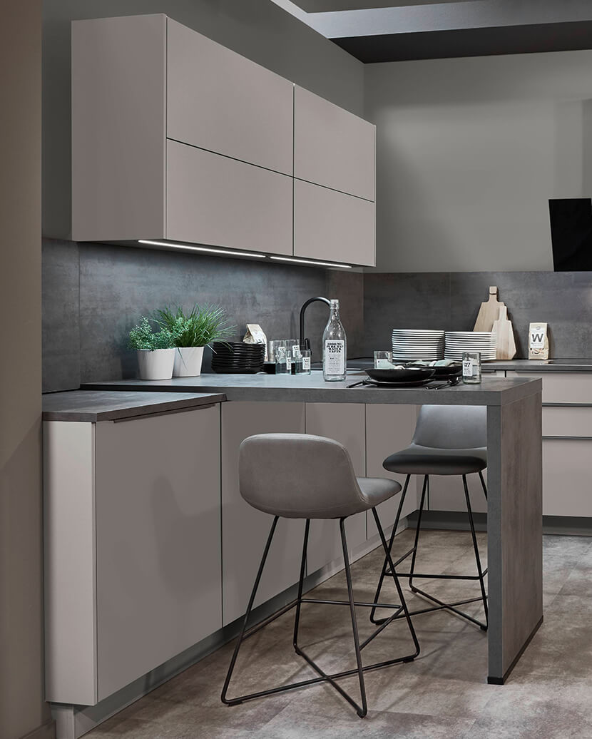 Täydellistä keittiön mattapintaa etsivät valitsevat Divine-malliston ultramattapintaiset kaapistot, joiden sävynä on pehmeä taupe-harmaa. Sormenjälkiä hylkivä pinnoite korostaa kaapiston mattavaikutelmaa. Tummemman harmaa mattakaapisto löytyy Motion-mallistostamme. Liuskekivenharmaiden keittiön kaappien pinta on supermatta, joten se näyttää todella modernilta.