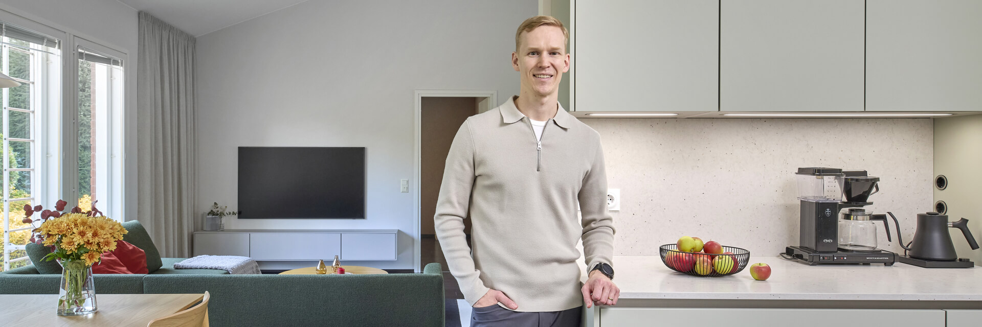 Tässä keittiötarinassa päästämme ääneen itse Noblessan kiintokalusteiden asiantuntijan. Noblessa Turun kauppiastrainee Anssi Soiniitty kertoo omin sanoin, mitä valintoja hän teki ammattilaisena oman kotinsa keittiöön, ja mitä yksityiskohtia jokaisen kannattaa huomioida uuden keittiön hankinnassa.