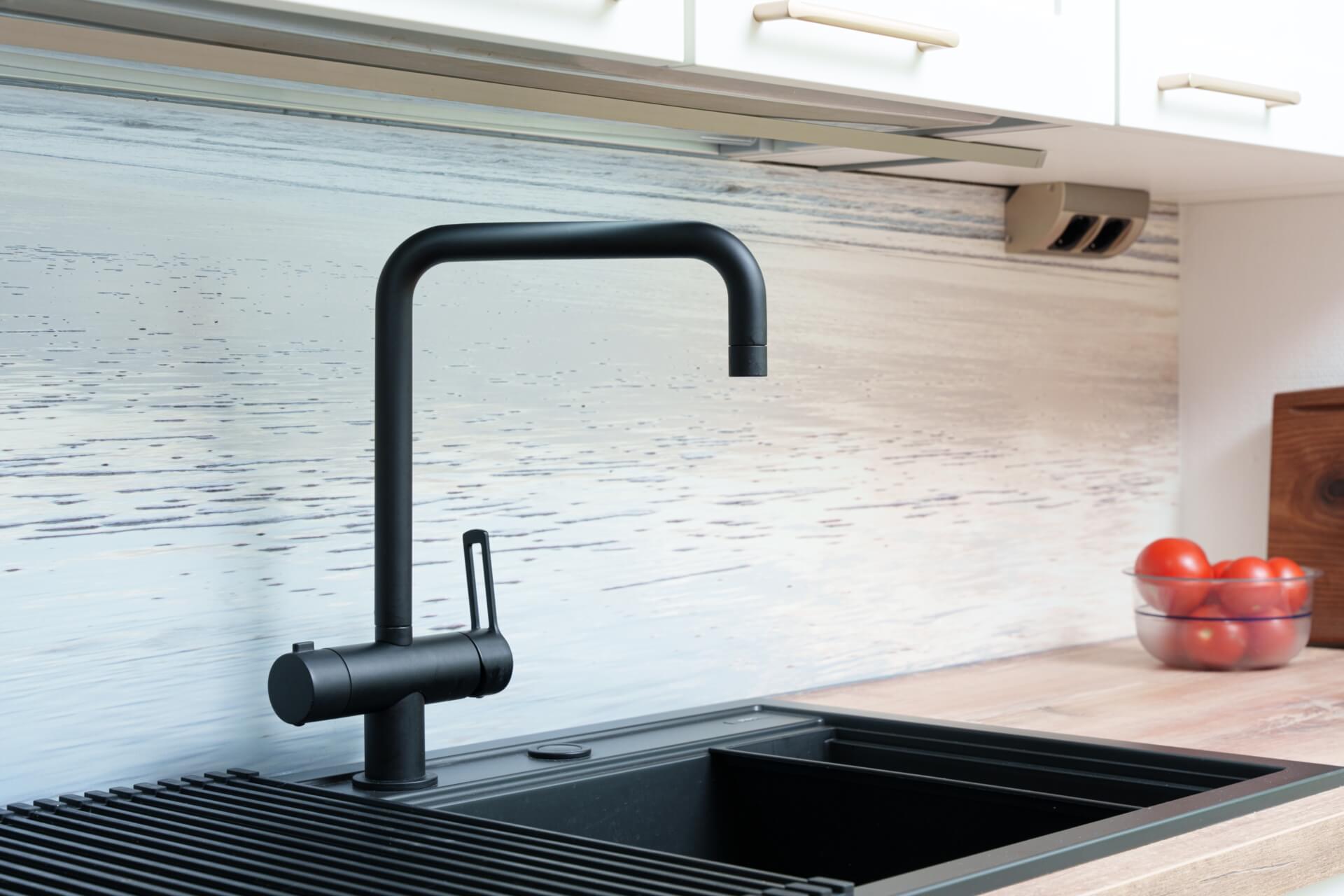 – Oikea, ergonominen työskentelykorkeus oli tärkeää asiakkailleni. Siksi liesi- ja allaspuolen yläkaapit asennettiin hieman normaalia alemmaksi. Tiskiallaspuoli haluttiin toimivammaksi, joten siihen valittiin iso, leveä Elleci Best 360 -allas lisävarusteineen. Allas onkin kuulemma osoittautunut käytössä jo vallan mainioksi ja monipuoliseksi.
