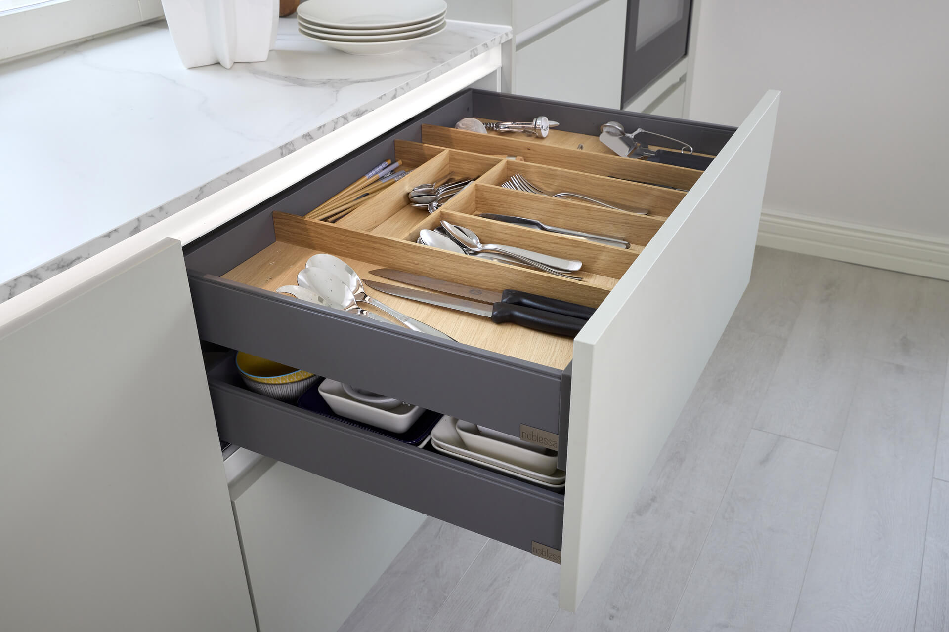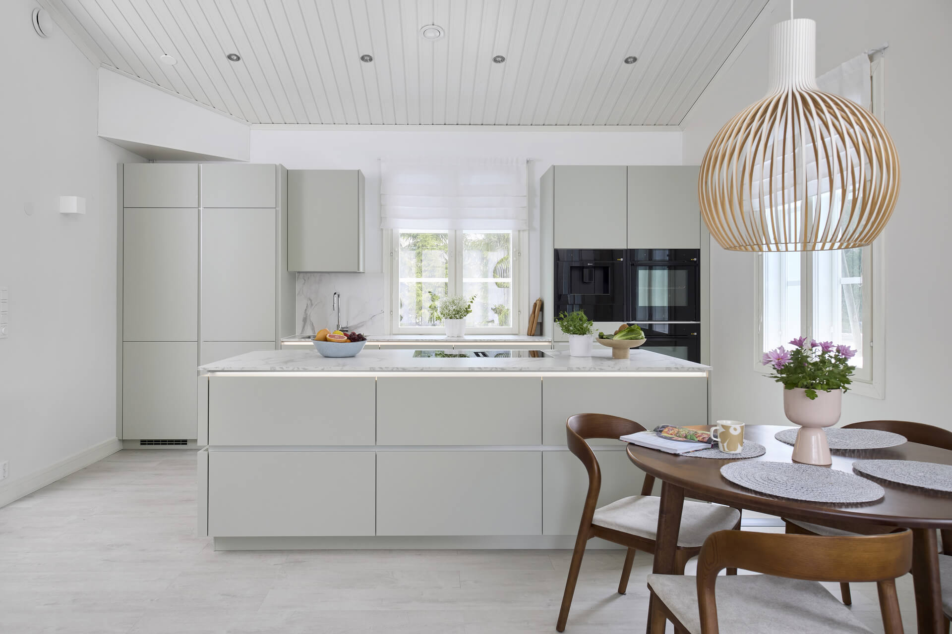 – Se oli hienoa, miten pitkälle valmiina kaikki Noblessan kaapistot tulevat. Asennus kävi ihan supernopeasti, ja Tommin tiimi oli jo ensimmäisen asennuspäivän jälkeen melkein valmis. Toisena päivänä viimeisteltiin vielä kodinkoneet, tasot ja muut yksityiskohdat. Valmiista keittiöstä huomaa, että kaikki on tehty todella ammattitaitoisesti.