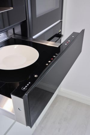 – Tuo uunin alla oleva lämpölaatikkohan on todella monipuolinen. Sitä voi käyttää moneen muuhunkin asiaan kuin lautasten lämmitykseen. Sillä voi tehdä esimerkiksi jugurttia, sulattaa hitaasti marjoja tai leipiä, tai kuivata yrttejä.