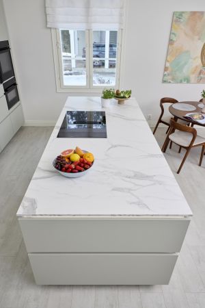 - Työtasot. Keraamiset tasot ovat ihanat ja todella kauniin näköiset. Ne ovat myös kestävät ja helppo pitää puhtaina, ja on huoletonta, kun kuumat astiat voi laskea uunista suoraan tasolle.