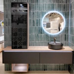 Kylpyhuonelaatikosto (kokonaismitat tason kanssa): leveys 1042 mm, syvyys 485 mm, korkeus 592 mm