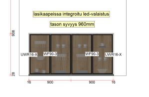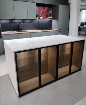 - Nova Plus -valot saarekkeen lasikaappien sisällä